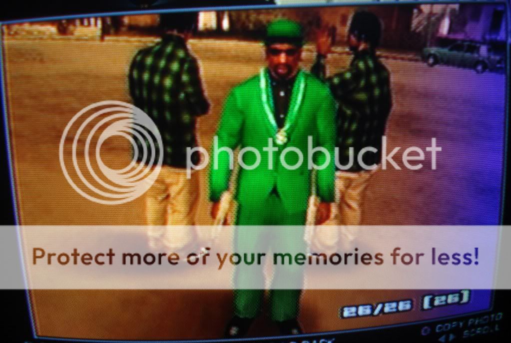 xNamexTakenx Posted January 18, 2008 Share Posted January 18, 2008 Here's my CJ: Sorry for the crappy quality of the pic. I only have San Andreas for the PS2. I first took a picture of him with his camera (In the game). Then, I took the picture with a digital camera lol. Is there any other way to do this? Like, to get better quality or something? Anyway, if you can't make out what my CJ looks like, he's wearing all clothes from Didier Sachs (Gotta love that clothing store ). IDK, to me he looks kinda like a mafioso lol . Also, he's really buff (But, too bad it doesn't show ). I might post some more pics later. Link to comment Share on other sites More sharing options...