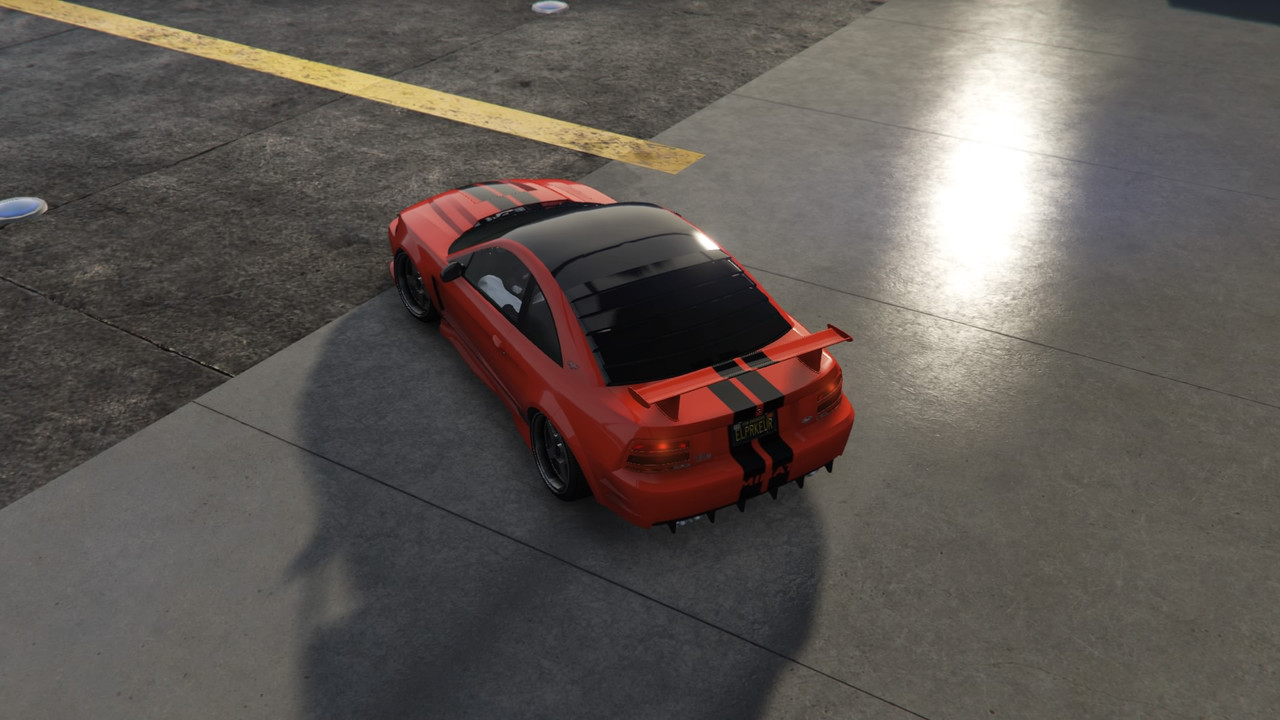 Here’s my Dominator ASP. It’s custom-made and features the yet-to-be-released Cobra livery, which is solid black except for a snakeskin pattern around the lower half of the car which lets the body color show through, so the scales are the body color. On my car, the primary & secondary texture is super-shiny epsilon, recolored the RGB of Utility Bright Red. It also has Utility Red pearlescent and pure black wheels. The interior is currently Torino Red, but I may get it redone in Utility Red.