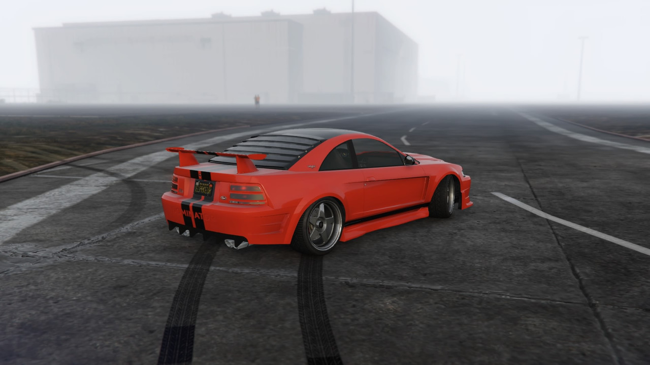 The license plate SN99SVTR is a reference to three things. First, this Dominator is based on the fourth-generation Mustang, which has the internal code name SN95. The Mustang received a significant design update in 1999, but was still the same generation underneath. Although officially still the SN95, it’s known unofficially amongst Mustang enthusiasts as SN95, and is also referred to as “New Edge” owing to the sharper lines on the refresh as compared to the softer lines of the earlier SN95s. This Dominator is based more on later SN95s, so I used SN99 to reflect that. Next is SVT, the performance team at Ford which came out with the specialty performance vehicles. Finally, the R is from Cobra R.